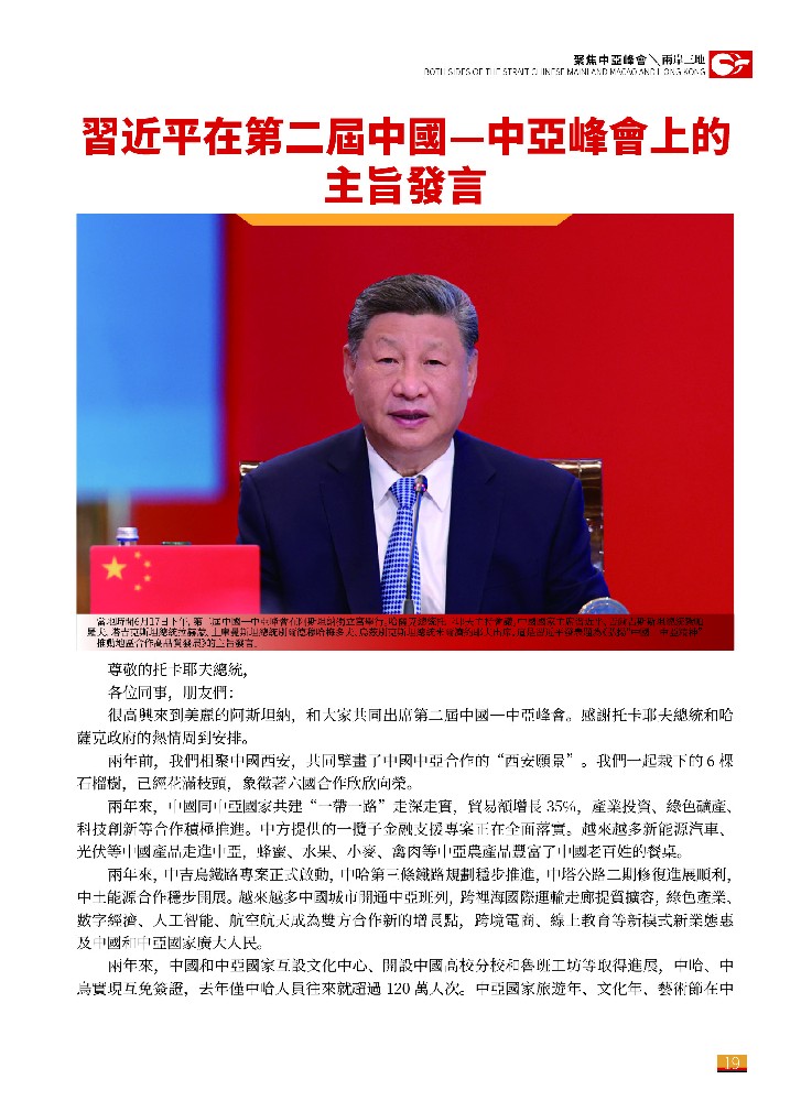 習近平在第二届中國一由中亞峰會上的主旨發言